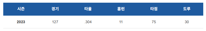 2023시즌은 김혜성의 커리어 하이였어요. 타율 3할대를 기록하며 공격력을 입증했고, 특히 도루 30개는 리그 상위권 기록이었죠!