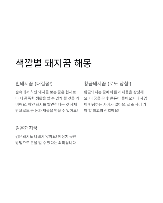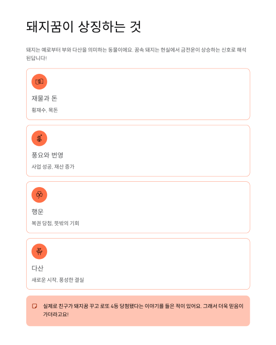 여러분은 어떤 돼지꿈을 꾸셨나요? 혹시 당첨된 경험 있으신가요? 댓글로 공유해주세요! 🐷 다음 시간에는 용꿈 해몽으로 찾아올게요. 기대해주세요!