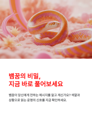 뱀꿈은 대체로 행운과 경고가 공존하는 메시지입니다. 내 삶의 상황이나 감정에 따라 해석이 달라지니 뱀의 색깔, 행동, 감정에 주목해야 해요. 그리고 뱀꿈이 준 신호에 맞게 건강관리와 대인관계에 신경 쓰는 게 중요합니다.