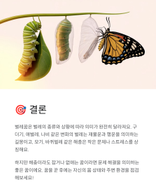 나비 꿈 변화와 행운을 의미해요. 예쁜 나비일수록 좋은 일이 생길 거예요. 새로운 만남이나 기회가 올 수 있어요.