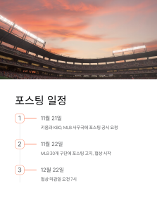 마감일은 12월 22일 오전 7시까지예요. 만약 이 기간 안에 MLB 구단과 계약을 체결하지 못하면 내년 11월 1일까지 포스팅에 나설 수 없고, 올해 8월 키움과 맺은 6년 120억 원 규모의 계약이 이어지며 키움에 잔류하게 되죠.