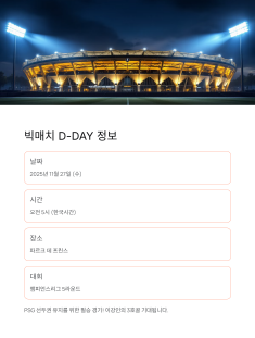 • PSG는 챔피언스리그 리그 페이즈에서 선두권 유지를 위해 반드시 승점이 필요해요