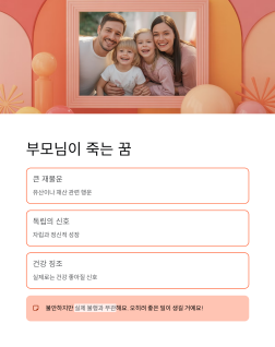 부모님 돌아가시는 꿈 꾸면 정말 불안하잖아요. 저도 어머니 돌아가시는 꿈 꾸고 새벽에 깨서 바로 전화 드렸어요. 근데 꿈해몽상으로는 오히려 좋은 꿈이래요. 실제로 안 좋은 일이 생긴다는 의미가 아니라, 재물이나 행운을 의미한대요.