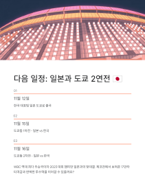 한국 대표팀은 오는 11월 12일 일본 도쿄로 건너가요. 그리고 15일부터 16일까지 이틀 동안 도쿄돔에서 일본 야구 대표팀과 2연전을 치르게 된답니다. WBC C조에서 함께 경쟁할 상대이자 최대 라이벌인 일본과의 대결이니 정말 중요한 경기예요!