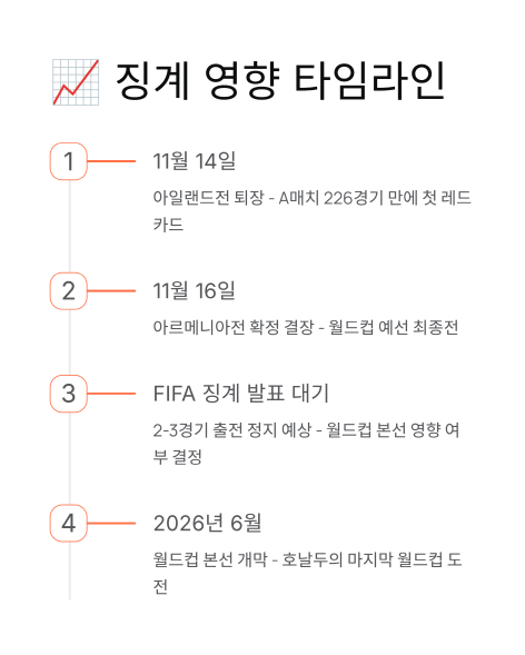 만약 FIFA가 3경기 징계를 내린다면, 플레이오프 2경기를 소화하고 월드컵 본선부터는 정상 출전할 수 있어요. 하지만 2경기 징계를 받으면 월드컵 조별리그 1차전도 뛸 수 없게 되죠. 정말 아슬아슬한 상황이랍니다!
