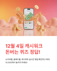 🚨 12월 4일 모든 캐시워크 돈버는 퀴즈 정답