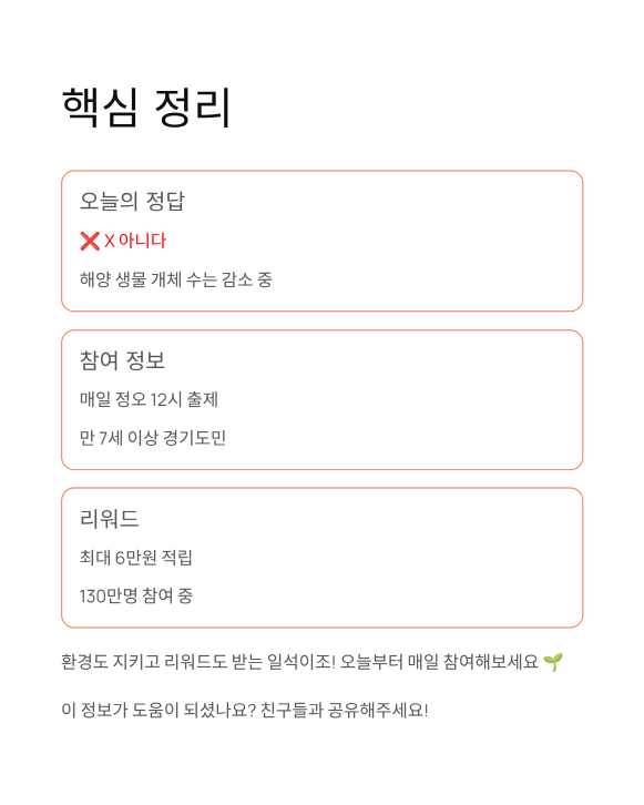 ✔️ 오늘(11월 8일) 퀴즈: 해양 생물 개체 수 증가?